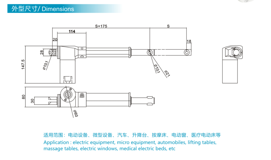 專業(yè)生(shēng)産加工(gōng)電(diàn♥→✘)動推杆、電(diàn)機(jī)推杆、控制(zhì)器(qì)、控制(zhì)闆、手控器(qìλ)等系列産品,适用(yòng)于手術(shù)床、口腔綜合治 ₽療機(jī)、按摩椅、電(diàn)動沙發₹✔§≤、電(diàn)動輪椅、醫(yī)療護理(lǐ)床、電(diàn)動展台♠↓Ω、電(diàn)動天窗(chuāng)、汽車(chē)、生(shēng)産線、★≠¶÷紡織、污水(shuǐ)處理(lǐ)、起重機(jī)、糧飼加工(gōng)™±、人(rén)體(tǐ)工(gōng)程家(jiā)具等需直線運動執δ×>行(xíng)機(jī)構的(de)場(chǎng)合。